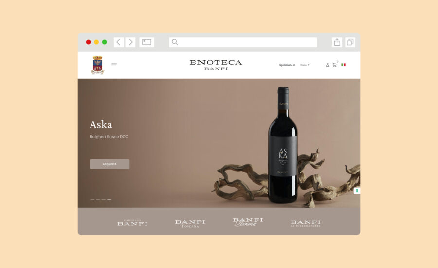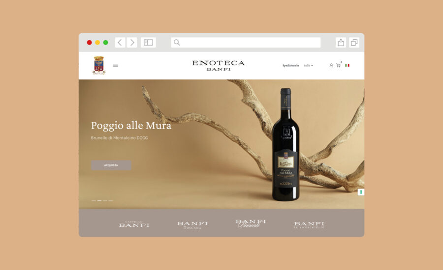 El objetivo principal de enotecabanfi.it Significa ofrecer a los amantes del buen vino un acceso fácil y privilegiado a la amplia gama de finos vinos Banfi. Aprovechando la tecnología de la plataforma de e-commerce Wineplatform, hemos transformado el comercio electrónico de Banfi en un punto de referencia para los amantes del vino, con un escaparate digital completo organizado en cinco categorías distintas: Castello Banfi, Banfi Toscana, Banfi Piemonte, Vecchie Vannate y Ricercatezze.